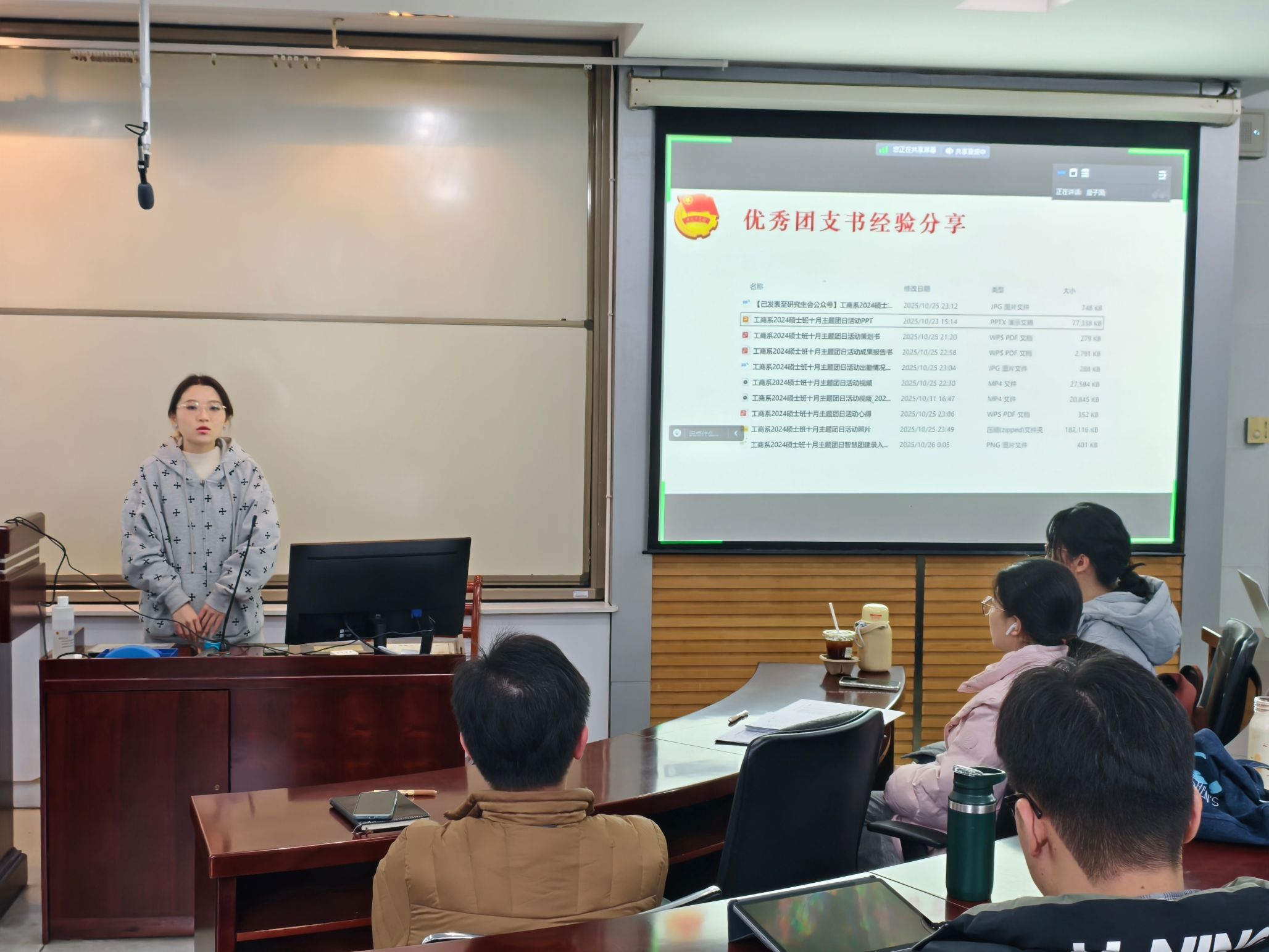 此外,本次会议还邀请了工商系2024硕士班团支部团支书陈湘倩同学,介绍支部建设和团日活动组织方面的优秀经验。陈湘倩同学以具体策划书为例,提出在进行团日活动时要让团员们理解思想政治教育的重要性,并以更精彩和丰富的形式吸引团员们参与,同时以具体硬性规则进行活动保障。