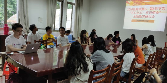 2018级科硕第七与第八党支部联合开展了“不忘初心、牢记使命”主题教育工作支部主题党日活动。通过瞻仰革命遗址、专题汇报学习、自由研讨发言、重温入党誓词等活动,引导支部广大党员同学、入党积极分子深刻领会新时代中国共产党历史使命的内涵和要求,积极投身学习生活实践,不断加强党性修养。