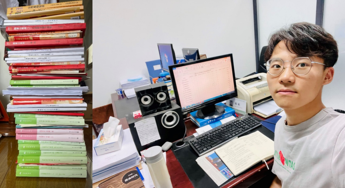 相比于选择其他就业方向的同学来说,考公的战线无疑是漫长的。考试期间,徐梓峰先后报考了江苏、吉林、上海、浙江、江西、广东、湖北等地方选调与省考、国考,并取得了优异的成绩。日拱一卒,久久为功,能够取得这样的成绩,他将其归功于平时的点滴积累。为了回答试题时能从容自若,他每天利用午餐时间浏览人民日报“锐评”栏目,了解最新时事与主流媒体观点,并在饭后将个人思考记录在素材本上;为了在地方选调考试中更加出彩,他在考前收集当地政务工作亮点并加以改造,成为申论中当地考官颇为亲切的生动举例;为了在面试环节脱颖而出,他立足专业所学,基于产业的角度剖析当地经济发展痛点并针对性地提出建议,在面试现场侃侃而谈;为了开阔视野,与时代同呼吸,他借助计算机科学技术双学位的功底,自考了数据库工程师四级,在考察面谈中围绕“数字经济”娓娓道来。除了这些“巧思”,学长在备考上表现出的毅力与自制也令人钦佩。他说道,当时自己谢绝了一切不必要的娱乐活动,保持着每天12个小时的高强度学习。每晚在图书馆被管理员熄灯请回已是家常便饭,回到宿舍仍然继续挑灯学习,舍友休息后,他便到楼梯间、到天台、到茶水间学习。“吹灭读书灯,一身都是月”。学累了,他便抬头看看窗外的点点星空,仿佛立马扫去了疲惫,再次投入到学习中。