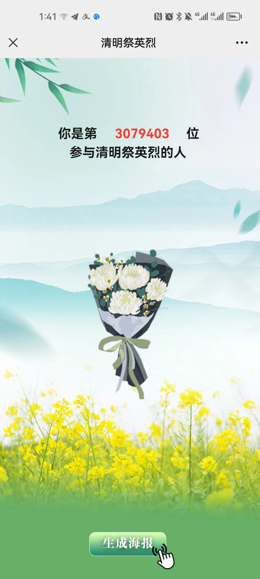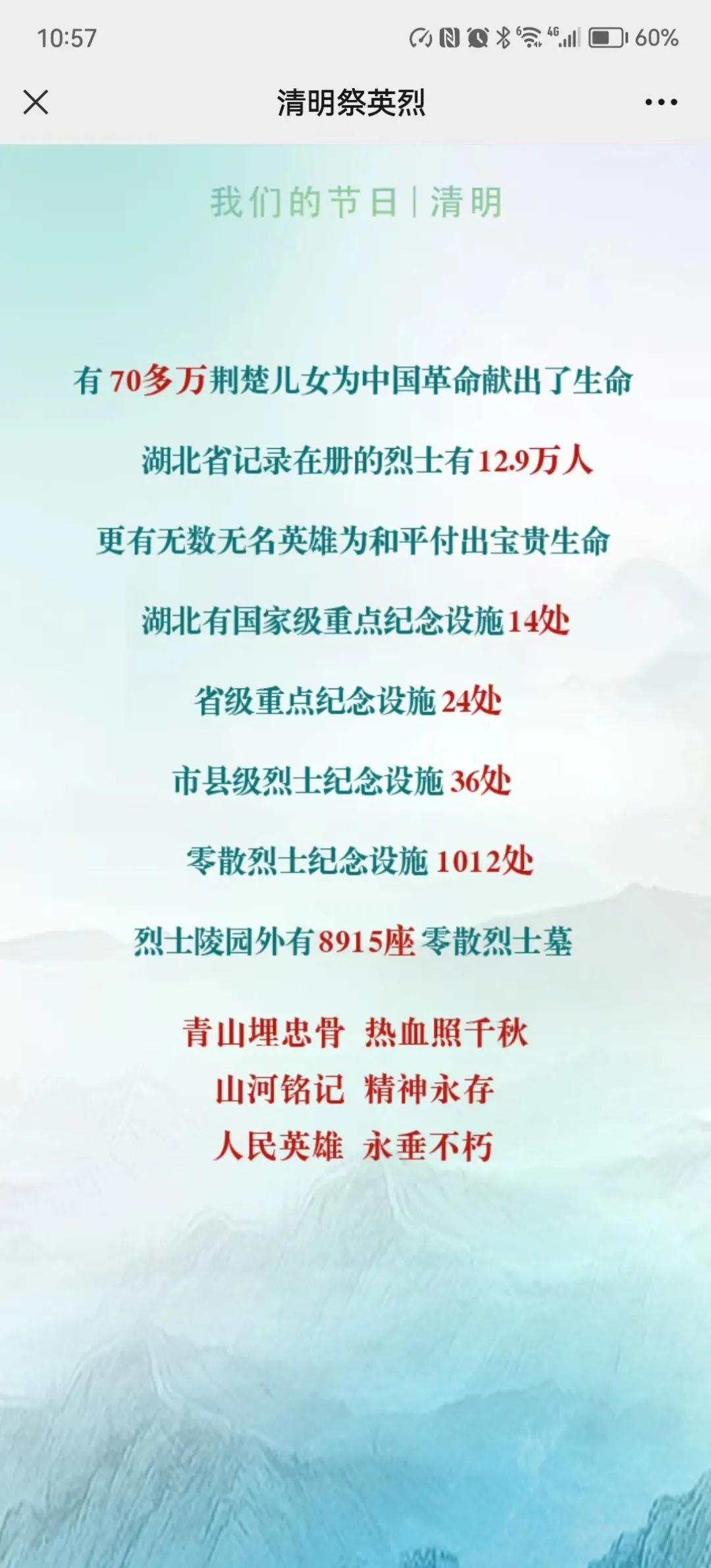 “清明时节雨纷纷,路上行人欲断魂”。清明时节,缅怀之时,不仅要祭奠亲人、追思古人,更应缅怀先烈、祭祀英烈,在家国同祭中,增进民族情感,涵养家国情怀,凝聚爱国共识。英雄是民族最闪亮的坐标。中华民族从站起来、富起来到强起来,从来都不是随随便便凭空而降的,而是久经磨难,靠一代又一代人的牺牲和奋斗换来的。换句话说,没有先烈们舍小家顾大家、抛头颅、洒热血的英勇奋斗、牺牲奉献,就不可能有我们现在美好幸福的新时代。正如习近平总书记所言:“近代以来,实现中华民族伟大复兴成为中华民族最伟大的梦想,中国人民百折不挠、坚韧不拔,以同敌人血战到底的气概、在自力更生的基础上光复旧物的决心、自立于世界民族之林的能力,为实现这个伟大梦想进行了170多年的持续奋斗。”清明时节,通过祭祀与追思,感恩英烈,铭记光辉历史,传承红色基因,牢记宗旨,接续奋斗,把我们的祖国建设得更富强,把革命先辈们开创的伟大事业不断推向前进,以此告慰为国牺牲的英灵。