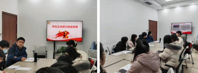 随后,杨书记对大家的感想进行总结,并结合研究生的实际情况与大家进行了深入的谈话交流。