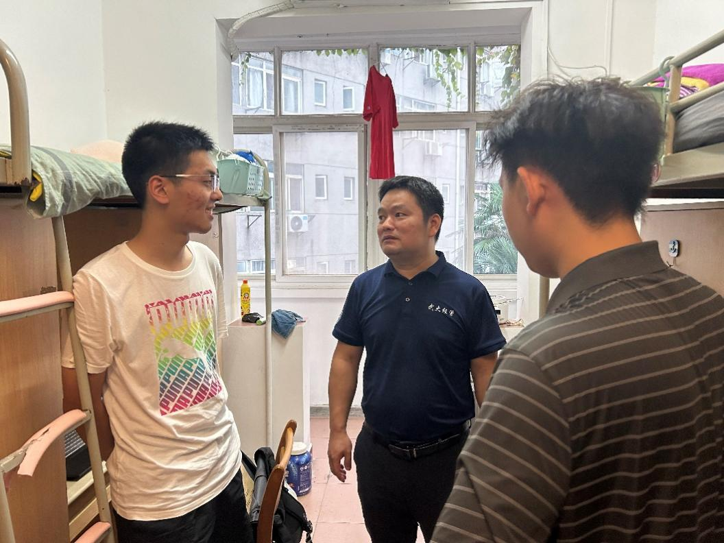 傍晚18:00,学院党委副书记杨志威带领研究生专职辅导员队伍前往工学部9舍和信息学部17舍走访新生,与新同学们面对面亲切交谈,详细询问大家开学的感受与期待,传递了学院对新同学们的热忱关心,让每位新生感受到“珈”的温暖和归属感。