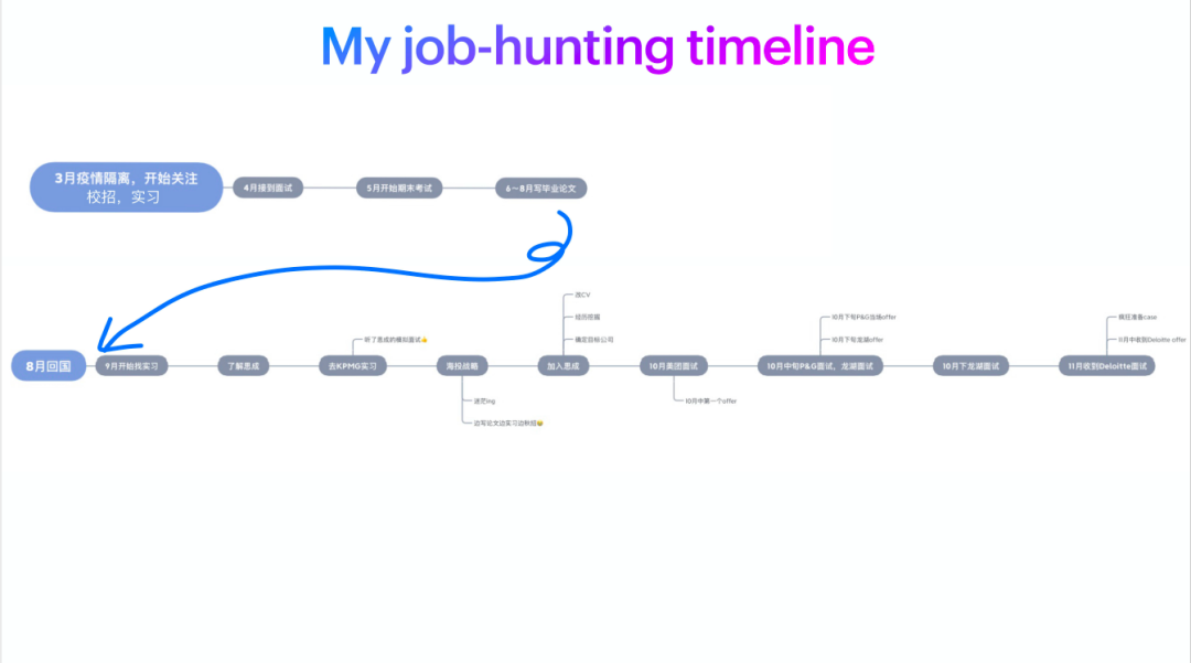 范师姐从自己实际的求职过程出发,完整介绍了自己的求职时间线。
