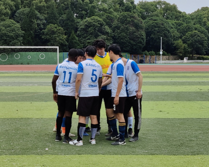 赛前队员们相互照顾,互相备好护具、绷带,展现了经管男足的“家庭凝聚力”;赛后队员们共同回看比赛录像,分析战术,复盘失误,取长补短,及时进行战略的调整,以期在下一场比赛获得胜利。