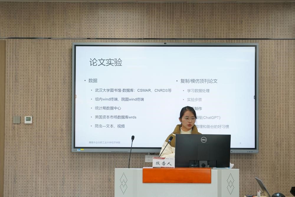 金融系校友来进行科研经验分享,以及金融系九位研究生来汇报论文。首先,中南财经政法大学经济学院的黄晓琪老师,合肥工业大学经济学院的屠雪永老师,华中科技大学经济学院的肖雅慧老师分别就自己的科研经历和高校求职经验与同学们进行了交流。
