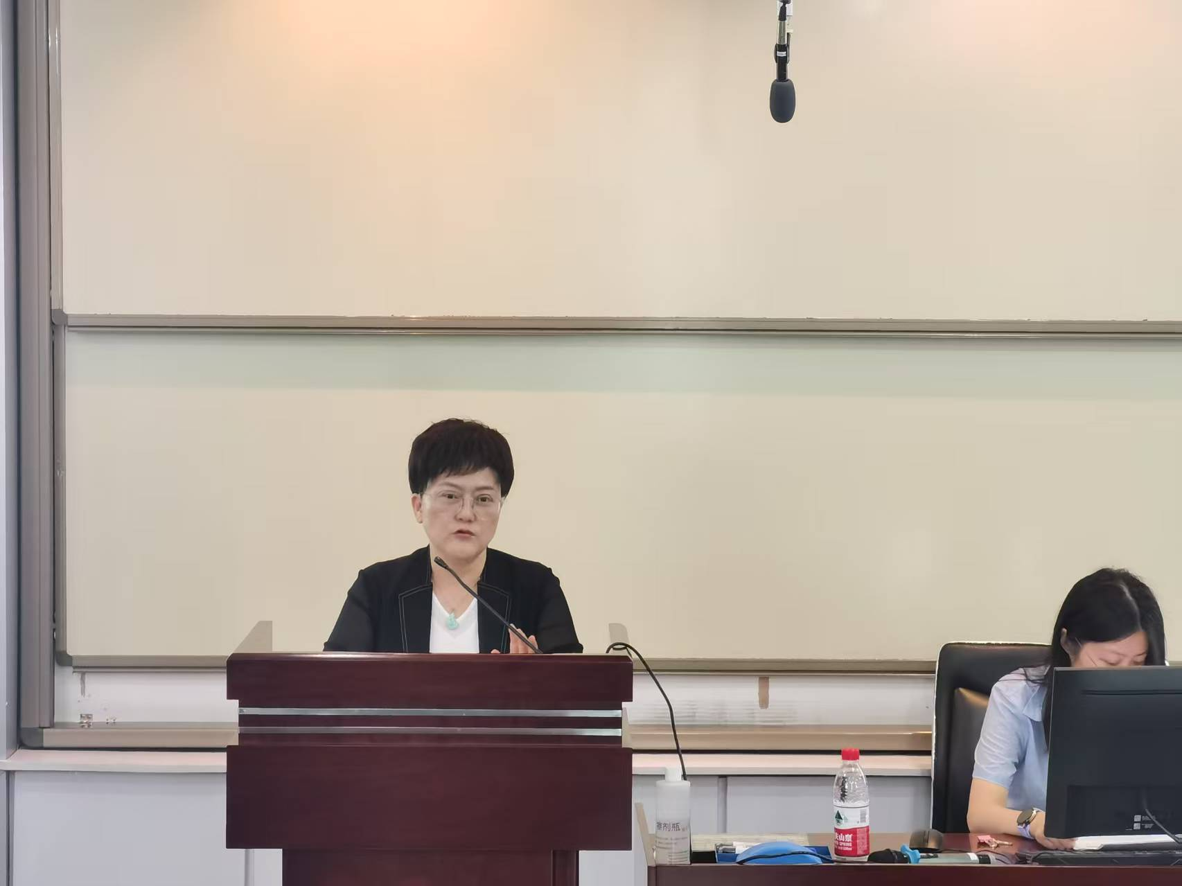 专业硕士学位行业导师,保险专业学位研究生教育指导委员会委员,中国人民人寿保险股份有限公司湖北省分公司党委书记、总经理任丹琪受邀作“于时代浪潮中锚定方向: 深挖保险专业内核,领航职业发展新程”主题讲座,保险与精算系主任王正文老师、保险系硕博士研究生、大四及大三同学共四十余人参与了今天的讲座,本次讲座由保险与精算系主任王正文老师主持。