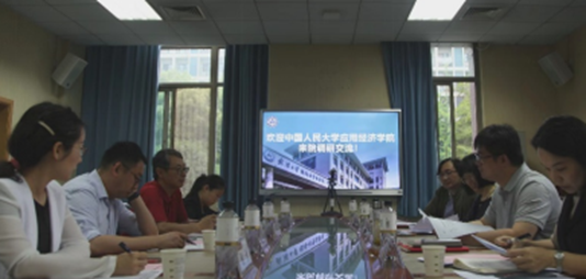 2023年5月26日上午,中国人民大学应用经济学院副院长魏楚、院长助理安子栋、教务办公室主任陈婧思、教务办公室副主任张男一行4人来院调研。学院副院长余振、党委副书记谢雅维、MBA/EMBA项目主任卫武、研究生工作办公室主任沈仕雄、研究生教学管理办公室副主任彭惠参加了调研会。余振主持会议。