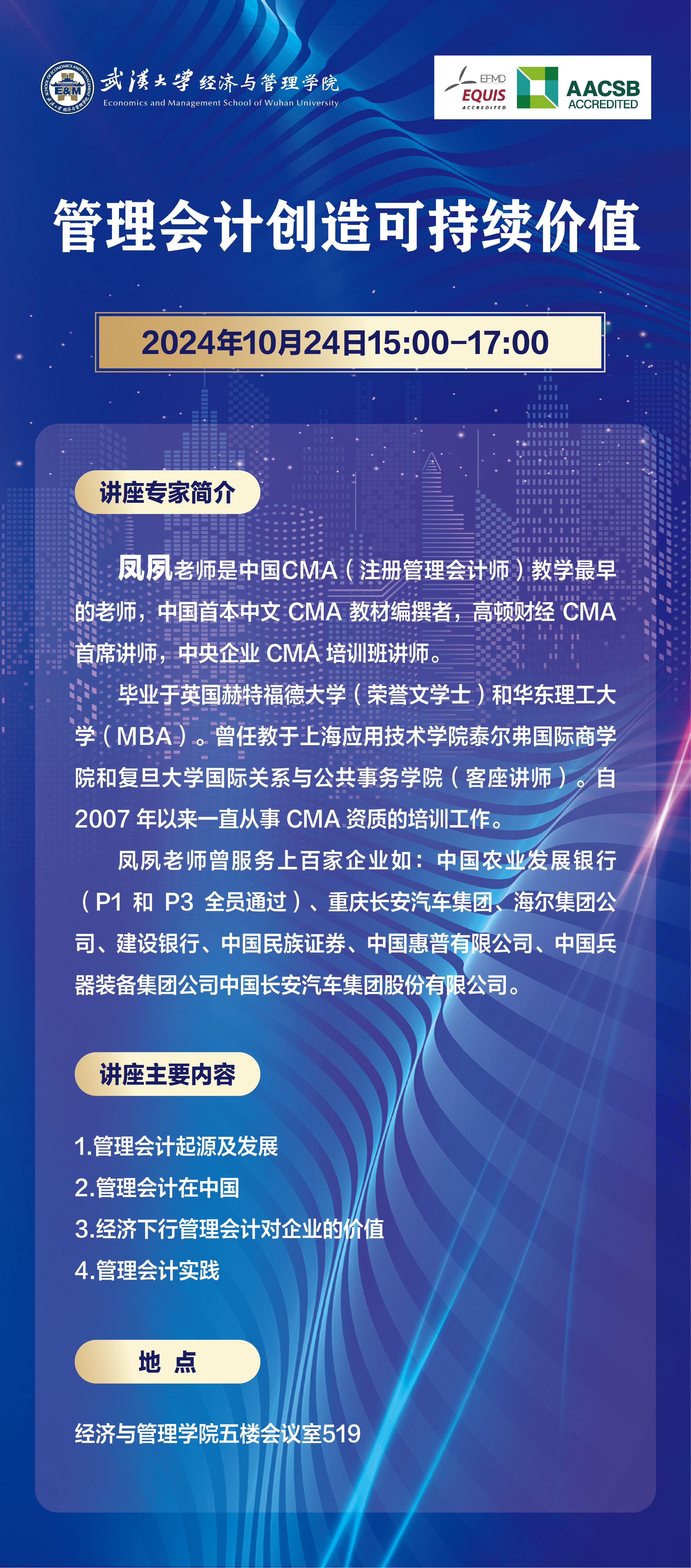 讲座预告 | 管理会计创造可持续价值
