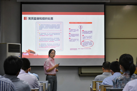 组织员周娟作题为《对标标准化规范化建设,全面推进党支部高质量发展》的主题交流。她从习近平总书记关于组织工作和党支部建设的重要论述出发,对照新时代党支部建设有关条例,结合学院工作实际,以问题为导向围绕重温两个《条例》、党支部委员会建设、支部日常工作注意环节三个方面展开分析。周娟同大家一起温习了《中国共产党支部工作条例》和《中国共产党党员教育管理工作条例》,简要梳理了学院教职工党支部工作中需要注意的环节与细节,突出强调支部委员应进一步明晰各自工作职责、加强协同配合,共同推进支部党建工作。