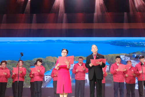 离退休教职工表演了由学院老协原会长严清华老师创作的诗朗诵《百卅经管心向党》,激情高昂地讴歌了百卅经管的红色基因传承和感人故事。参加演出的有严清华、王峰、张彬、黄子四、刘喜爱、熊桂芳、郭华、李晨、沈作霖、张广玲、肖兵、黄春姣、黄本笑、梅阳春、张慧岚、曾平凡、周雄国等17位老师,领诵人肖兵、王峰。