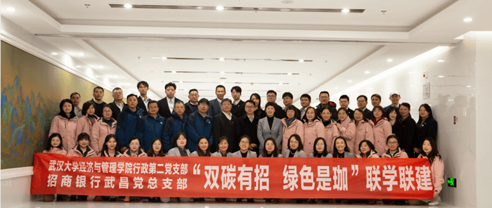 12月15日,为深入开展学习贯彻习近平新时代中国特色社会主义思想主题教育,学院行政第二党支部与招商银行武汉分行武昌党总支共同开展“双碳有招 绿色是珈”主题党日活动。本次活动旨在通过联学联建活动形式在互学互动中拓展学术与实践的视野,凝聚思想共识,强化使命担当。学院纪委书记谭小林、副院长谢雅维、博士生导师齐绍洲教授,以及行政第二党支部党员群众与专硕联合会党建部学生党员代表共30余人参加了本次活动。