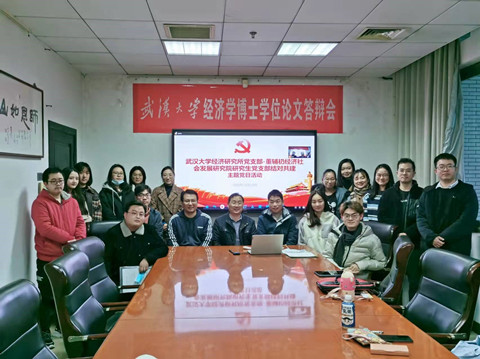 2021年12月16日下午,学院经济研究所党支部和董辅礽经济社会发展研究院研究生党支部举行了结对共建主题党日活动,活动采取“线上+线下”结合的方式举行,参会党员共计47人(含线上),其中经济研究所党支部教师党员5人,董辅礽经济社会发展研究院研究生党支部学生党员41人、经济研究所博士生党员1人。