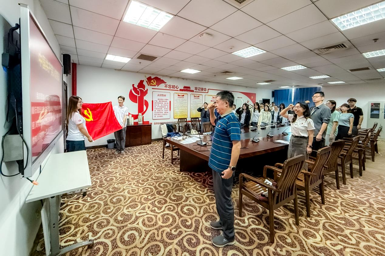 “我志愿加入中国共产党,拥护党的纲领,遵守党的章程,履行党员义务,执行党的决定,严守党的纪律……”在鲜红的党旗下,党员们庄严肃立,紧握右拳,在严清华老师的带领下重温入党誓词,牢记初心使命。铿锵有力的誓词回荡在会场,每一位党员的心灵都受到了一次深刻的洗礼,更加坚定了伟大的共产主义信念,强化了责任感和使命感。