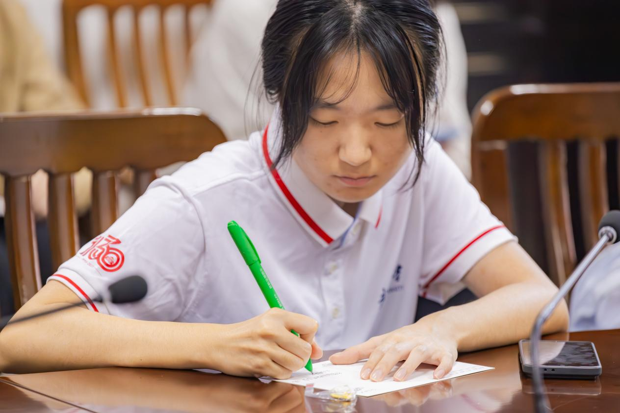 青年的动人之处,就在于希望、勇气,和他们的远大前程。与会的老师同学们认真地在明信片上写下了对国家、他人或自己的寄语,展现了对未来的美好期待。活动结束后,老师们随机抽取了若干张明信片,并在党员们的见证下宣读了寄语内容。