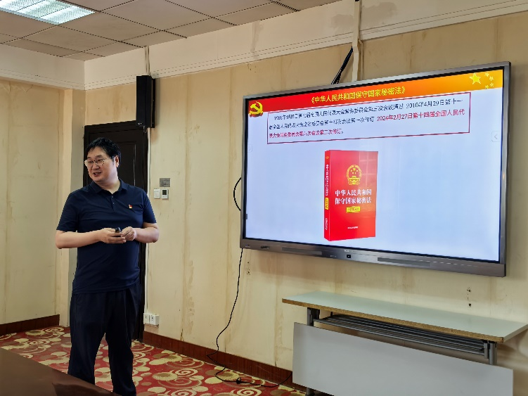 支部书记胡艺首先给全体教师主讲了题为“提升保密责任意识,筑牢保密安全防线》的微党课。他从《中华人民共和国保守国家秘密法》的三次修订开始,介绍了该法坚持总体国家安全观,所遵循的“党管保密、依法管理,积极防范、突出重点,技管并重、创新发展”的原则,讲解了属于国家秘密的诸多事项与三级密级分类及其保密期限,最后分析了国家保密载体的管理与违法处罚措施。课后,他还分享了自己随院党委中心组到湖北省保密教育实训平台学习培训的经历与收获。