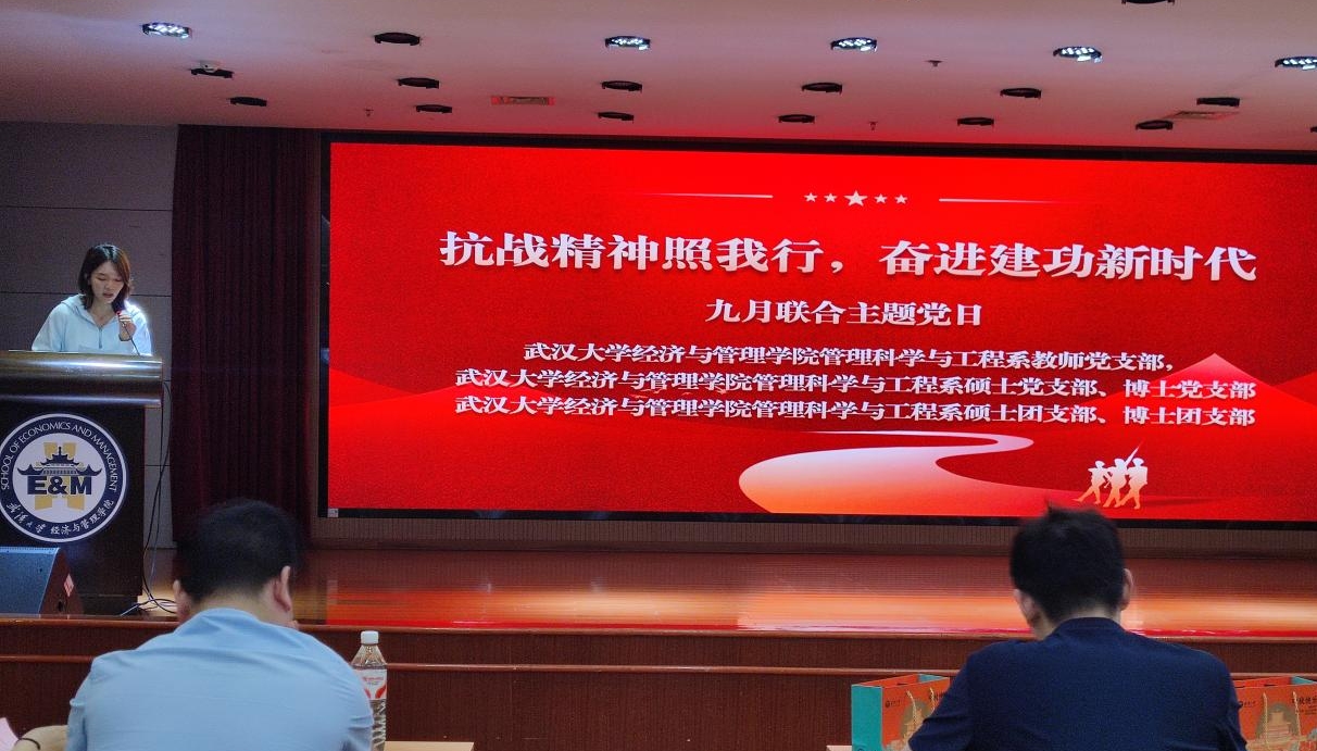 管理科学与工程系教师党支部、硕士党支部、博士党支部及相应团支部,于天壕珞珈梧桐报告厅成功举办“抗战精神照我行,奋进建功新时代”主题党日活动。