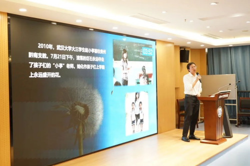 “开始时捱一些苦,栽种绝处的花”,卞冉以歌词引入,探讨青年学生的青春之花应该如何绽放。通过自己和校友赵小亭的支教事迹,以生动的语言、鲜明的观点、饱满的热情、富有感染力的讲解给大家呈现了一堂有温度、有深度的微党课,体现了AV淘宝