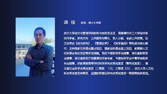 人文社科优秀成果奖特等奖、全国财政理论研究优秀成果奖一等奖等科研奖项。他今天跟我们分享的题目是《促进共同富裕目标的收入分配与再分配制度改革:二十大提出的新方向》,下面有请龚锋教授。