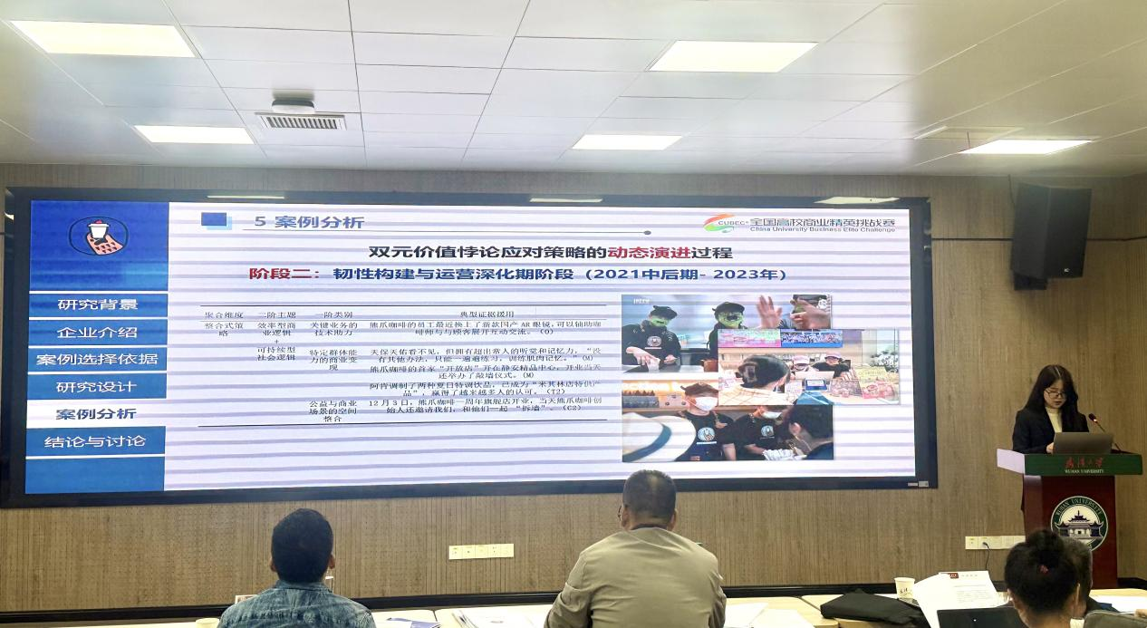 的曾庆荣、牛静茹和张婧。团队以社会企业为切入点,深度聚焦“双元价值悖论”这一前沿命题,通过对熊爪咖啡的纵向案例解构,系统揭示了其如何运用制度逻辑,实现从分离、整合到协同的动态策略演进,构建了“双元价值嵌合”理论模型。团队不仅剖析了社会使命与商业逻辑从冲突走向共生的内在机制,更通过管理者认知的驱动分析,为破解社会创业的可持续难题提供了具有启发性的中国方案。这段研究历程,既是对社会创新理论的扎实探索,也是将学术思考注入商业实践的一次生动尝试,团队深切体会到社会责任与商业智慧融合所迸发的强大生命力,为新时代创业生态注入了人文温度与发展韧性。