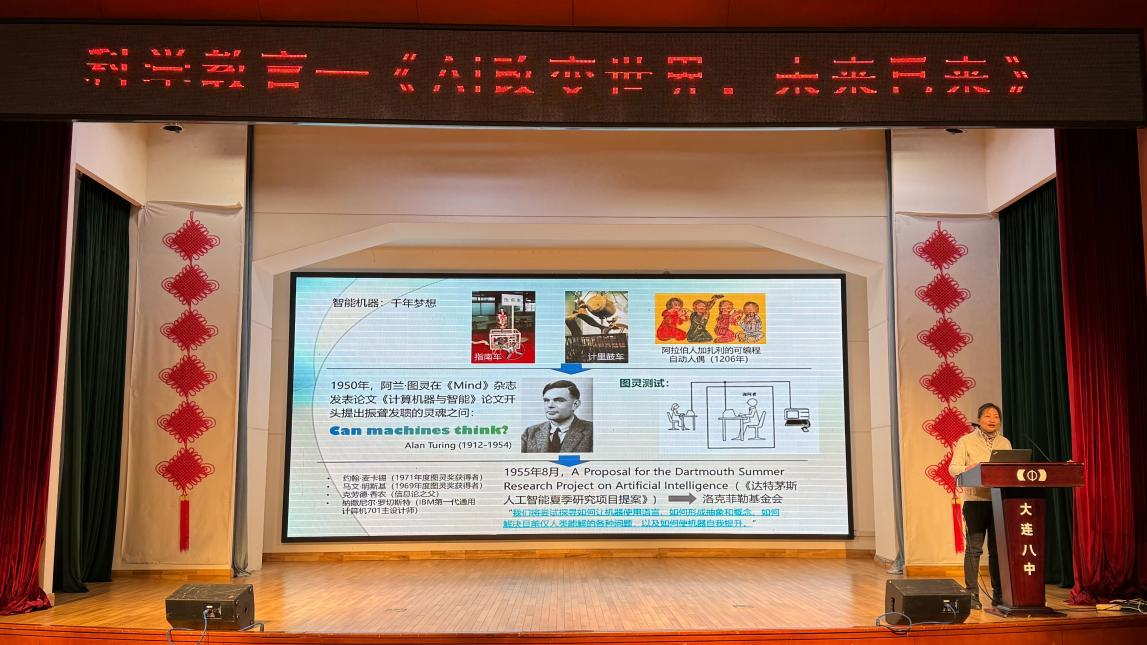 辽宁招生组大连片区负责人石岩老师与人工智能学院谢榕教授携手赴大连市第八中学,成功举办了一场人工智能主题讲座与招生政策宣讲活动。大连市第八中学副校长于杰、崔贺,教学主任董平、副主任王英策,以及全体高三年级学生和班主任共同参与了此次活动。