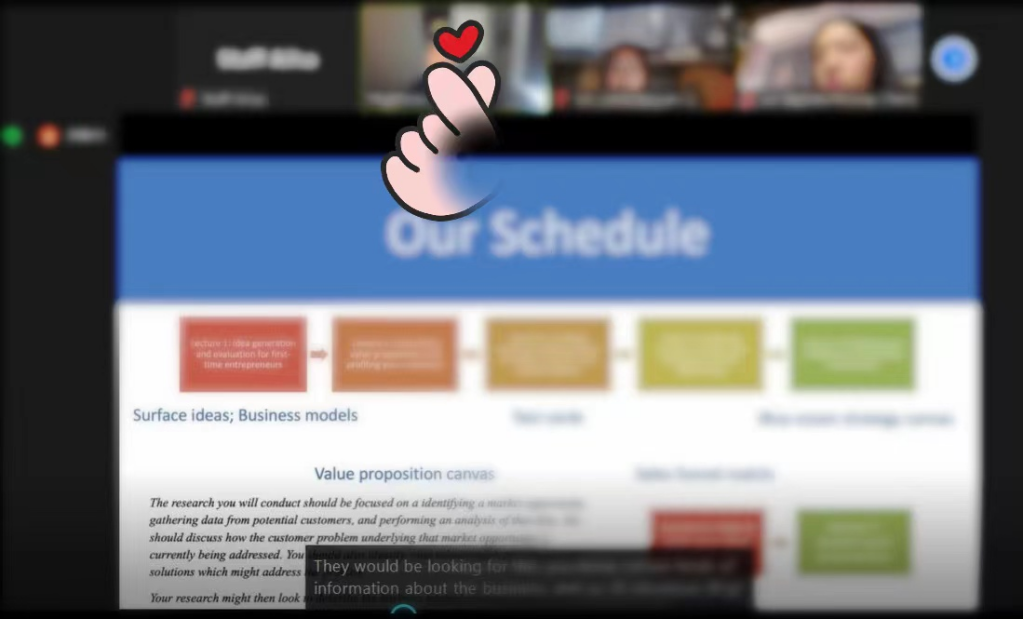 整个课程的主题都围绕Business model canvas(商业模式图)展开,分别讲授产生想法、构思价值主张和对准目标客户、创造针对市场和客户的产品、探寻客户通路和维护顾客关系、分析竞争力和外部环境以及精炼完善想法和融资。”