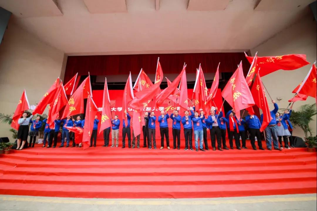 “学好数理化,走遍天下都不怕!”“空间物理系要占领宇宙,占领全人类!”“文学之树长青”……26个校友代表依次挥舞着各自院系的大旗,用掷地有声的口号展示不同学科的风采,赢得场下此起彼伏的喝彩。
