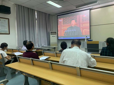 随后,在交流讨论环节上,支部每一位党员都积极畅谈感受,周雄国同志的发言以习近平总书记指出,‘没有任何力量能够阻挡中国人民和中华民族的前进步伐’为切入点,讲述了自己参加工作以后感受到的学校的进步与改变,这些都是在党的领导下,一代一代的武大人,改革创新、锐意进取密不可分的。兰草同志从‘艰苦奋斗,取得了令世界刮目相看的伟大成就’谈起,结合自身工作,表示要继续发扬党员吃苦耐劳,艰苦奋斗的优良传统。王芳同志表示今天是第四次观看习近平总书记的讲话,总书记时时刻刻教导我们,不忘初心、牢记使命,结合我们教育工作者的任务,就是不要忘记教育的初心,不要忘记时时刻刻以学生为本,为祖国培养德智体美全面发展的建设者和接班人。支部其余同志们也纷纷发言,表示作为一名高等教育工作者,一定牢记为党育人、为国育才的使命,全力推进“双一流”大学建设,为满足人民群众对优质高等教育的迫切需求而不懈奋斗!