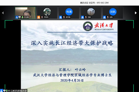 区域经济学博士研究生叶云岭的报告题目为《深入实施长江经济带大保护战略》。长江经济带生态环境地位突出,更是引领我国经济高质量发展的生力军,然而生态环境问题形势依然严峻。“长江经济带大保护战略”是新形势新背景下,对2016年以来习近平总书记提出的“共抓大保护、不搞大开发,生态优先、绿色发展”的传承,也是升级版表述,进一步突出长江经济带大保护的极端重要性。叶云岭博士生指出,深入实施长江经济带大保护战略,必须以加强制度创新、强化制度执行为突破口,重点做好三个方面的工作。一是要深入实施主体功能区制度,颁布实施长江经济带国土空间规划,推动主体功能区制度在市县层面精准落地,实施各有侧重的国土空间绩效考评机制;二是要深化实施产业负面清单制度,坚决落实产业负面清单管理制度,进一步细化产业负面清单管理制度,建立负面清单动态调整机制;三是要加快实施生态补偿机制,健全市场化多元化生态补偿机制,加快建立生态产品价值实现机制。