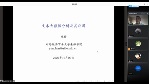 研究生教育教学活动立项《企业管理专业研究生高质量研究提升计划》的资助下,“柯力工商管理前沿研究方法系列讲座”第5期邀请对外经济贸易大学金融学院陈赟助理教授以“文本大数据分析及其应用”为主题举行线上讲座。