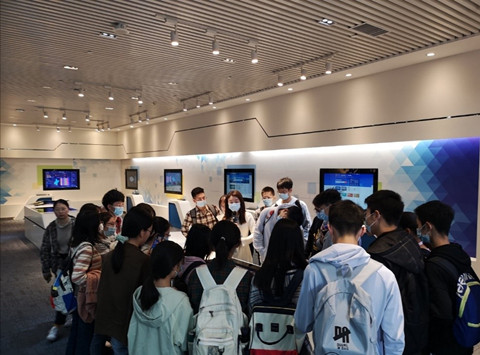 负责引导参观的校友邹经理向同学们详细讲解了公司围绕楚天云工程构建的全省一朵云顶层综合体系,介绍了公司在推动政务信息整合共享、建设“互联网+政务服务”体系,引领交通、医疗健康为代表的大数据创新。全省一朵云的建成,联通了全省的数据服务平台,实现全省数据上云,让政务服务更高效,助力社会治理精准化,利于实现宏观决策科学化。通过电子屏幕的展示,同学们看到公司提供的一个个与百姓生活息息相关的数据服务:整合各个医院患者就诊信息的武汉健康云;促进政府监管规范化、精确化、智能化的互联网+监管平台;整合各部门信息构建统一化平台,实现全省数据上云,让网上操作更加便捷,让政务服务更加贴近生活的湖北政务服务网;还有这次疫情中发挥巨大作用的疫情防控系统,健康码的发放并持续采集扫码情况,以指导疫情物资调度和生活物资的分配......