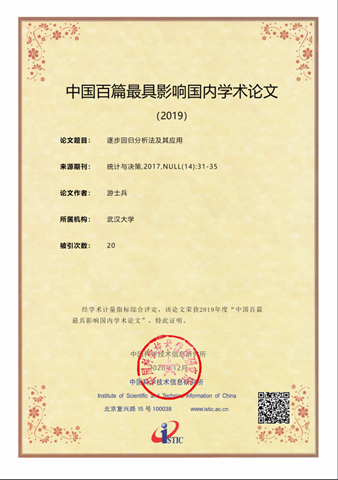 经济系游士兵教授发表在《统计与决策》上的论文《逐步回归分析法及其应用》入选2019年中国百篇最具影响国内学术论文,该文自2017年发表以来已被引用20次。