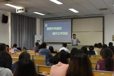 2021年4月23日下午,学院在B131教室举行了“紧抓作风建设、提高工作效能”为主题的作风建设宣传教育大会。党委书记杜晓成、纪委书记王滨对作风建设的有关中央要求、学校文件精神以及作风建设的具体要求进行了详细宣传解读,学院全体行政教辅人员参加了大会。本次活动为学院周末干部大讲堂第78期,大会由副院长沈作霖主持。