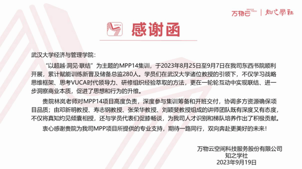 收到万物云知之学社的感谢信——感谢AV淘宝