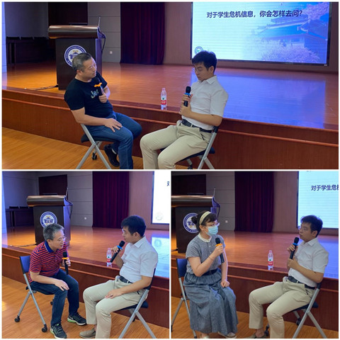 随后,校大学生心理健康教育中心马鑫老师带来了主题为“心理危机识别及初始干预”的主题报告。他为老师们仔细讲解了如何识别常见心理问题以及四个判断点,通过现场提问的方式,让老师们尝试判断自身的心理健康状况。此外,马老师分享了若干案例,帮助老师们梳理危机干预的过程和方法,并且邀请班导师进行现场模拟,现场讨论气氛热烈。最后,马老师对心理中心进行介绍,表示心理中心将和各位老师共同关注学生心理健康,守护学生健康成长。
