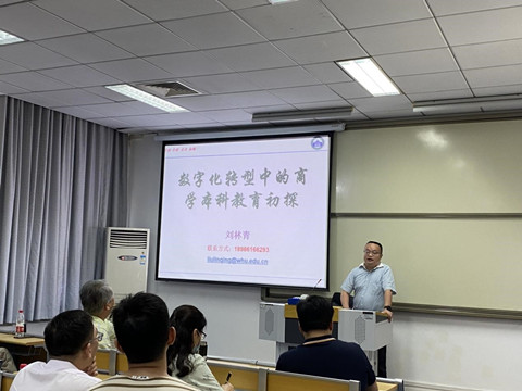 接着,工商管理系主任刘林青教授做了主题为“数字化转型中的商学本科教育初探”的专题报告。刘老师首先介绍了美国商学本科教育,围绕美国商学院案例深入分析了工商管理专业本科人才培养模式的九要素模型,阐明了工商管理课程体系设计需要注重理论与实践相结合,不断提升学生的领导力和创新能力。随后,他谈到数字转型形势下工商管理学科发展变化,介绍了信息时代下建设数字中国的重要意义。最后,刘老师表示在今后将联合多方力量持续推进本科商学教育提升,探寻新时代企业家精神和企业数字化转型。