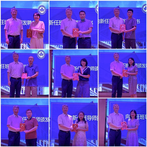 随后,杜晓成书记为2021年新聘班级导师逐一颁发聘书,并合影留念。