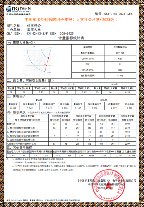 主办的《经济评论》影响因子的各项指标再创新高。