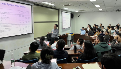 张俊森教授的报告内容丰富、视角新颖、讲述生动,其研究具有重要的理论与现实意义。在交流互动环节,与会老师和同学们纷纷加入讨论,各抒己见。大家就中国人口老龄化问题的研究设计、技术细节和研究可扩展的方向等问题进行了拓展讨论,讲座在热烈的研讨氛围中圆满结束。