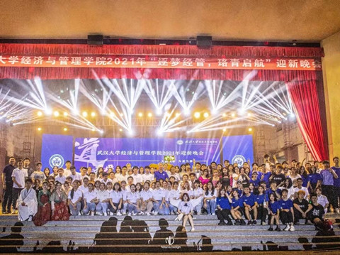 2021级本科新生迎新晚会于万千期待声中在梅园小操场拉开帷幕。晚会共分为序幕、青春畅想、逐梦飞扬、珞青启航四个篇章。
