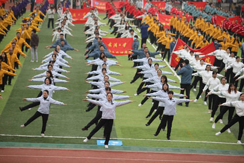 初冬清晨,天气微凉。广播操展演场上,一群蓝衣昂首挺胸、整齐划一,英姿飒爽地书写着生命至上、健康第一的新时代风貌。