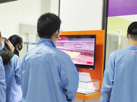 随后,同学们在工作人员的带领下,根据规定穿戴好相应的参观服与鞋套,依次参观公司自动化生产线与测试与认证中心(TCC)。讲解员引导同学们参观联想高度机械化智能化生产线,详细解释手机生产流程中不同环节的作用与意义。通过观看世界领先水平的智能机器生产与质量检测体系,同学们增进了对智能生产管理的切身了解。