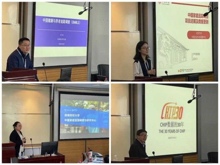 个人与家庭部分,西南政法大学经济学院副教授赵锐介绍了中国健康与养老追踪调查数据库(CHARLS),该数据库旨在收集一套代表中国45岁及以上中老年人家庭和个人的高质量微观数据,用以分析我国人口老龄化问题。CHARLS是唯一的具有全国代表性的中老年数据库,包含丰富的健康、社会经济和行为指标,可以满足研究人口老龄化问题中跨学科的数据需求。北京大学中国社会科学调查中心研究员吴琼介绍了中国家庭追踪调查数据库(CFPS),该数据库旨在通过跟踪收集个体、家庭、社区三个层次的数据,反映中国社会、经济、人口、教育和健康的变迁。2022年CFPS家庭问卷数达12000份,个人问卷数达31000份。西南财经大学经济与管理研究院副教授曾婷介绍了中国家庭金融调查数据库(CHFS),该数据库在全国范围内开展抽样调查,旨在收集有关家庭金融微观层次的相关信息。CHFS样本涵盖29个省、355个县(区、县级市)、1428个社区,家庭样本量达4万,个人样本量达12.7万。浙江大学公共管理学院特聘研究员詹鹏介绍了中国家庭收入调查数据库(CHIP),该数据库旨在收集家庭调查数据,用于分析改革开放以后的中国诸如收入、不平等以及贫困趋势等问题。CHIP收集了1988、1995、2002、2007、2013和2018年的家庭收支信息。CHIP2018以人口普查资料为抽样框,样本覆盖全国所有市辖区、40%的县,1.6万个小区和16万户参加调查。
