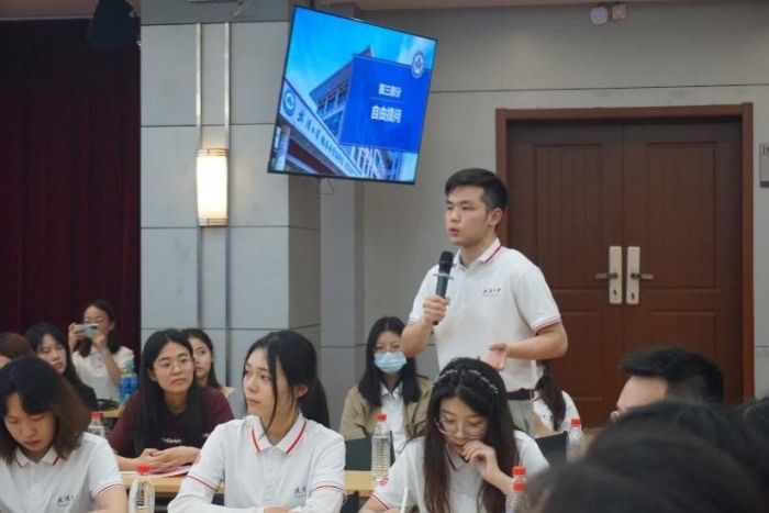 在交流提问环节,2023级硕士研究生丁子阳同学提出能否优化“传、帮、带”机制,打通高年级与低年级同学渠道、校友与在校生渠道,形成自由的匹配和信息兑换的相关问题。院领导结合实际情况对毕业生代表的提问进行耐心细致的解答。