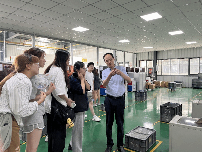 师生们在公司人事行政部宋家佩部长的引领下首先参观了公司展厅,初步了解了凯尔信公司的发展历程、业务与服务、AV淘宝和优势产品。而后,宋部长带领大家参观了凯尔信公司的实验室、生产车间和装配车间,向大家详细介绍了凯尔信自动化、智能化的生产线,讲解了汽车零部件的生产原理和工序。