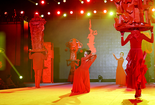 本届金秋服饰比之以往有很大的不同。在服饰设计上,更加侧重于配饰的设计与打磨,细节处巧用心思,体现了设计者们精妙的构思;在颜色搭配上,则紧扣命题,全力使用绛色,也就是我们熟知的中国红,在视觉体验上显得更加震撼,引人注目。