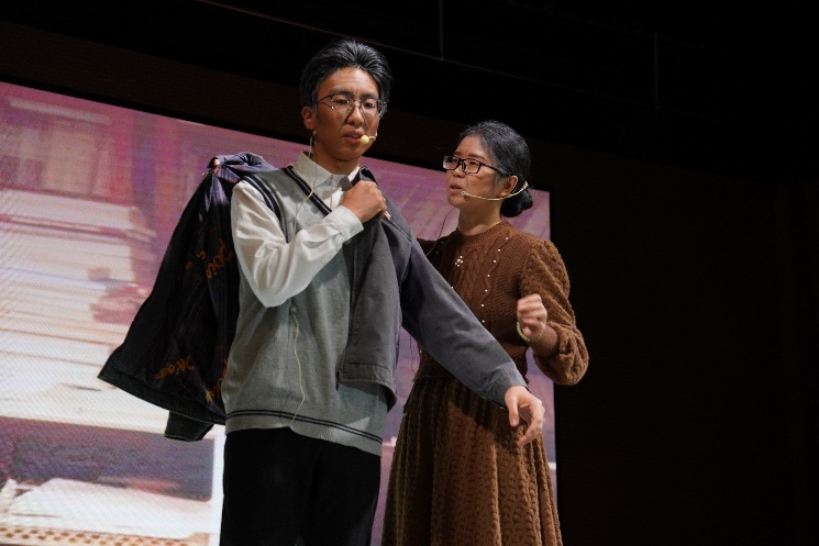 第二幕选取了张培刚的晚年一幕,夜灯低垂,张培刚仍躬耕于案前,引出了张培刚与谭崇台这对郎舅,也是哈佛大学校友,他们一生始终爱国,在发展经济学领域多年并肩前行的故事。