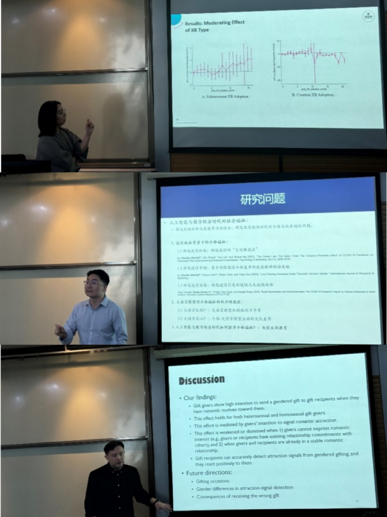 论坛分为“学者讲座”和“校友分享”两大精彩环节。在学者讲座环节,香港理工大学教授姜宇威以“送礼物的新见解(New Insights into Gift-Giving)”为主题,深入剖析了情侣浪漫关系中礼物选择的影响因素及差异,为参会师生带来了全新的学术视角和深刻的思考。南方科技大学研究员李少波则围绕“用更有温度的研究推动社会福祉”展开分享,他详细介绍了市场营销学科在提升人民福祉方面的前沿研究与实践,展现了学科的强大社会影响力。澳大利亚迪肯大学熊冰清助理教授就“利用XR技术平衡重塑多渠道零售(the Delicate Balance Between Complementarity and Substitution)”进行了深入探讨,为线上线下销售渠道的互补与替代关系提供了新的解决方案。
