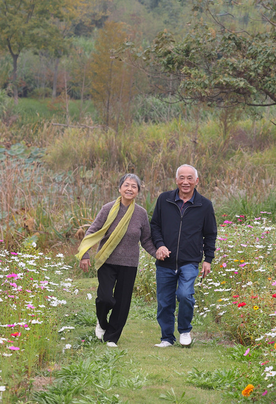 2021年10月29日深秋时节,离退休老师到咸宁仙鹤湖湿地公园秋游,参观贺胜桥战役纪念馆。周茂荣教授夫妇携手相伴50年,行且悠悠。