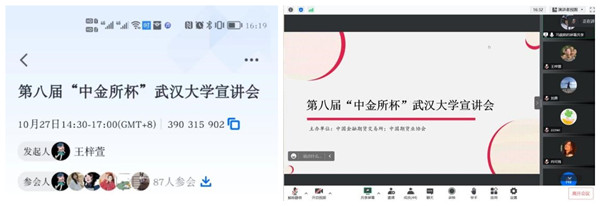 10月27日下午,学院成功举办第八届“中金所”杯全国大学生金融知识大赛宣讲会。本次宣讲会以线上形式举行,邀请到中金所投资服务部高级经理唐姝老师、中金所衍生品一部高级经理高小婷老师和长江期货卢哲老师对赛事和相关知识进行介绍,学院实验与信息中心徐晓辉老师、金融系张培老师和刘勇老师及近百余名同学参与会议。
