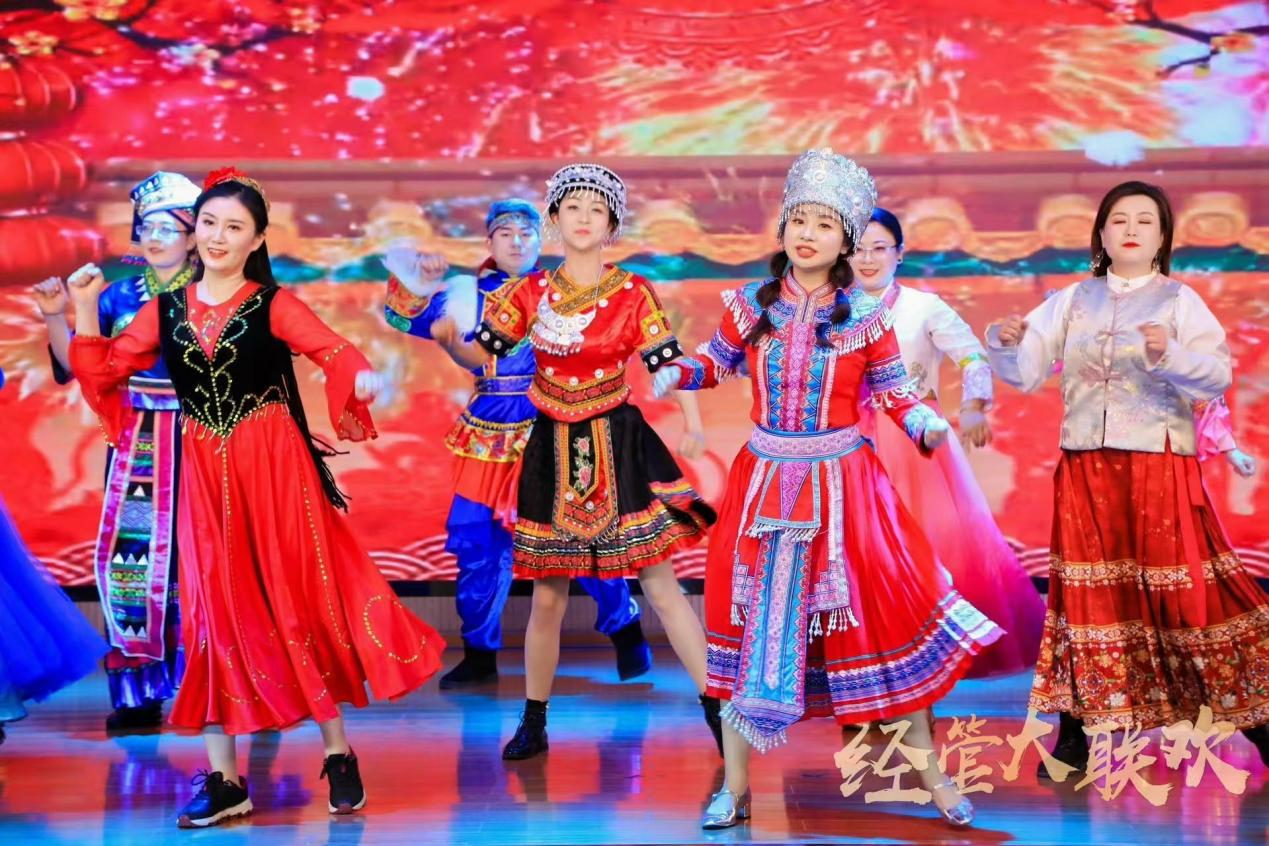 随后,一曲曲动人的旋律、一幕幕精彩的表演轮番上演。财政与税收系带来的曲艺三句半《财税精神颂》以诙谐幽默的方式展现了财税人的风采;本科生工作办公室和研究生工作办公室的唱跳节目《敬业阵线联盟》、经济学系的《欢乐中国南北热舞串烧》通过动感十足的舞蹈与歌声,彰显了教职工的活力与激情;技术经济与创新管理系的歌曲《让世界充满爱》更是唱出了温暖与希望。各系、各办公室的表演团队各展所长,以多样化的艺术形式,生动诠释了学院教职工积极向上、勇于创新、满怀信心、拥抱未来的精神面貌。